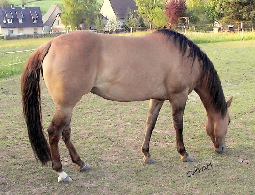 FQHA: 98,4% NFQHA: 93% HERDA:N/N GBED:N/N PSSM:N/N Agouti:A/a Dun:heterozygot Stutbuch I Sire: GLORY DUN IT by Hollywood Dun It Dam: JACS LITTLE PRISE by Jacs Little Pine Pedigree |